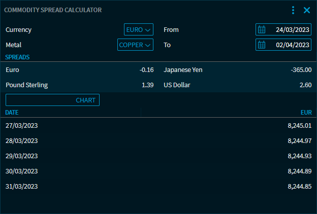 "Chart" view in the Commodity Spread Calculator