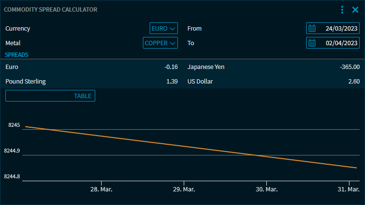 With the Commodity Spread Calculator, you an calculate the spreads of commodities.