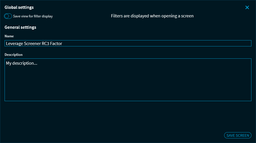 In the "General settings", you can change the name of the screen and enter a description.