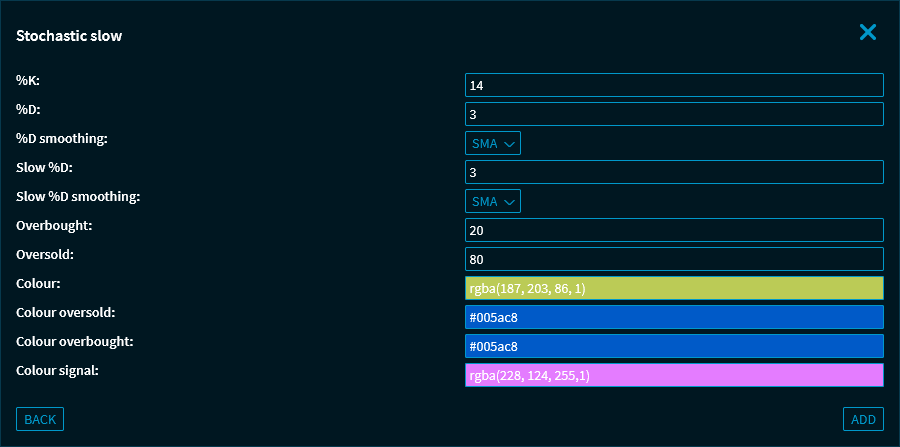 - If the %D line and the Slow %D line fall below the 20% level, the market appears oversold.