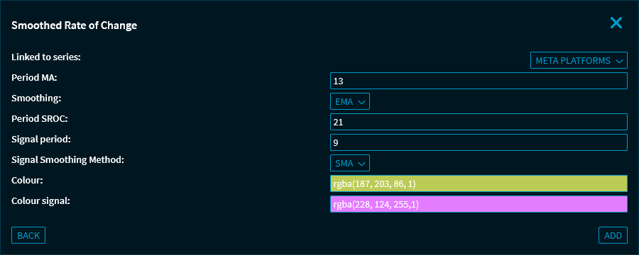 SROC = (current EMA - previous EMA) รท (previous EMA) x 100