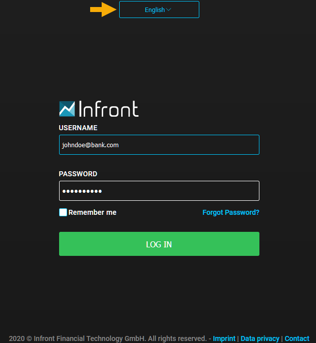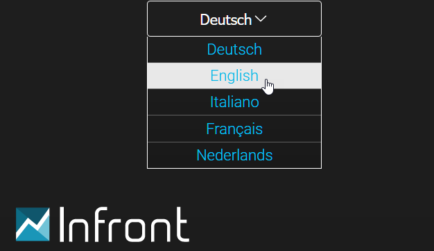 You can select the language on the login page of your Infront Investment Manager. Currently, you can select from five languages: