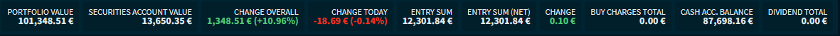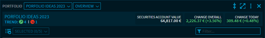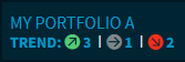 Trend | Below the portfolio name, you find information about the current performance of the positions: Shows how many positions are trending up and how many are trending down.
