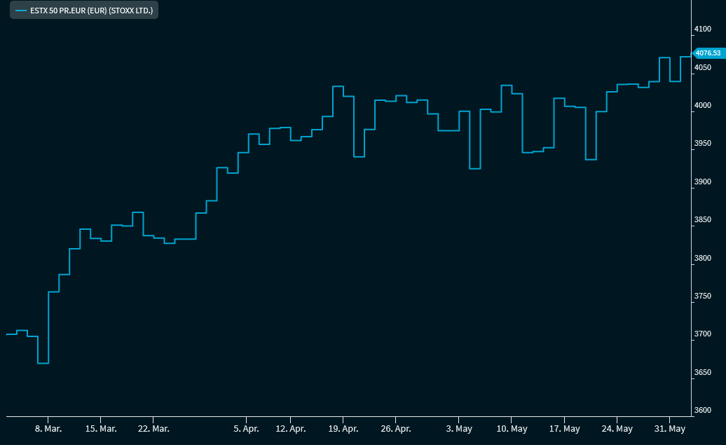 The "Steps" chart type displays the price time series as steps.