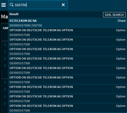 In the upper part of Infront Investment Manager, an input field is always available for a quick search for securities.