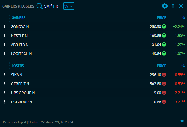 "Gainers & Losers" widget shows the risers and fallers of an equity index at one glance.