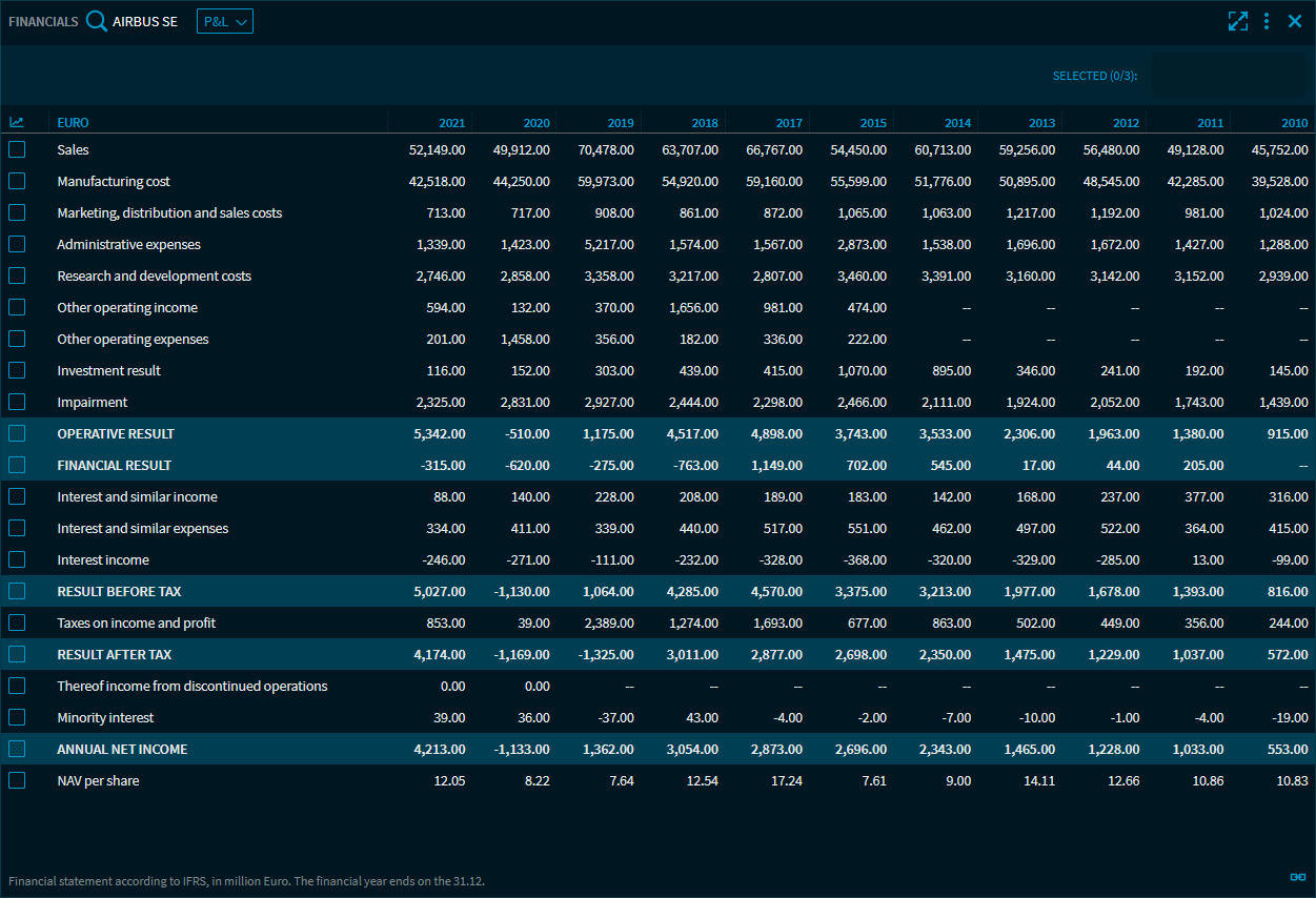 Select "P&L" to see the profit and loss statement for the last 5 years.