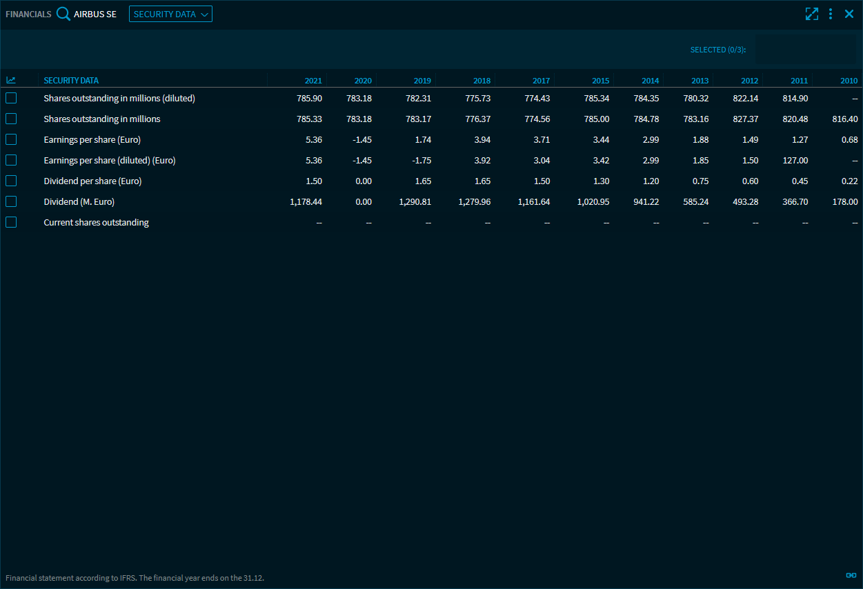 Select "Securities data" to see the share performance and dividends for the last 10 years.