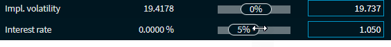 Interest | The current and simulated risk-free market interest rate. To change the interest rate by using the slider, you first need to enter an initial value in the input field to the right.