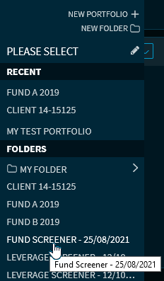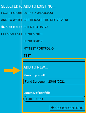 - In the "Selected" drop-down list, select "Add to portfolio". Then, enter a name for the new portfolio in the "Add to new..." area.