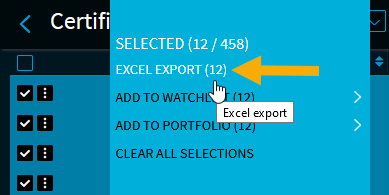 In brackets, you see the number of the selected securities. If no securities are selected, then the "Excel export" command will export up to 1000 instruments from the results list.
