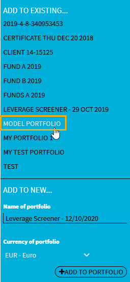 You can add selected instruments of a results list to an existing portfolio. To do this, follow these steps: