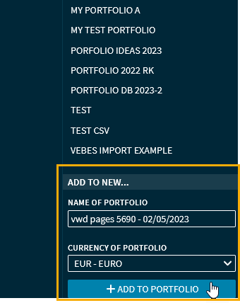Create securities from vwd page as a new portfolio