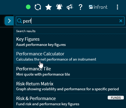 Click a search result to open the widget in the dashboard.