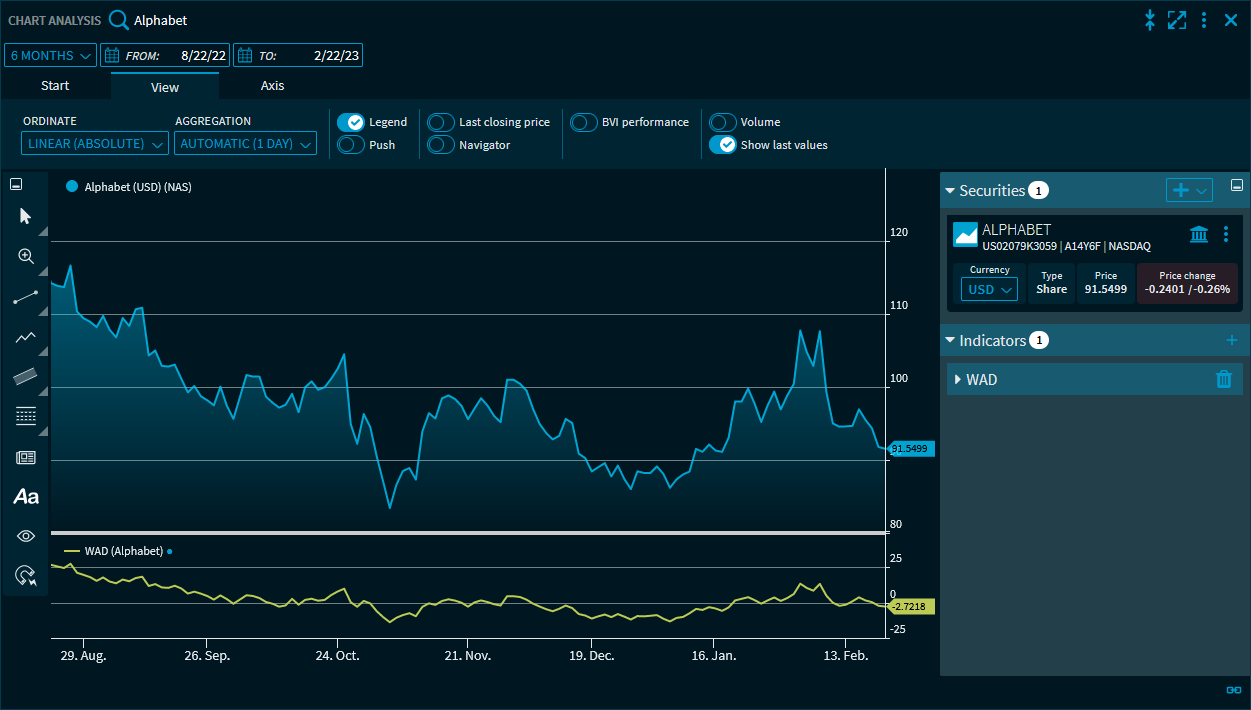 Larry Williams developed the Williams Accumulation / Distribution (WAD) to measure price changes. The aim of the indicator is to generate signals through divergences to the price trend.